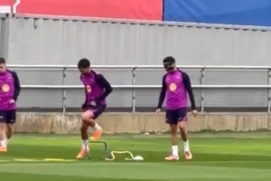 David Ibáñez在社交媒体晒出巴萨训练视频,并配文写道:“巴萨今日进行训练,备战对阵塞尔塔的比赛。埃里克-加西亚佩戴面具训练,克里斯滕森明日也可能随队出征。”